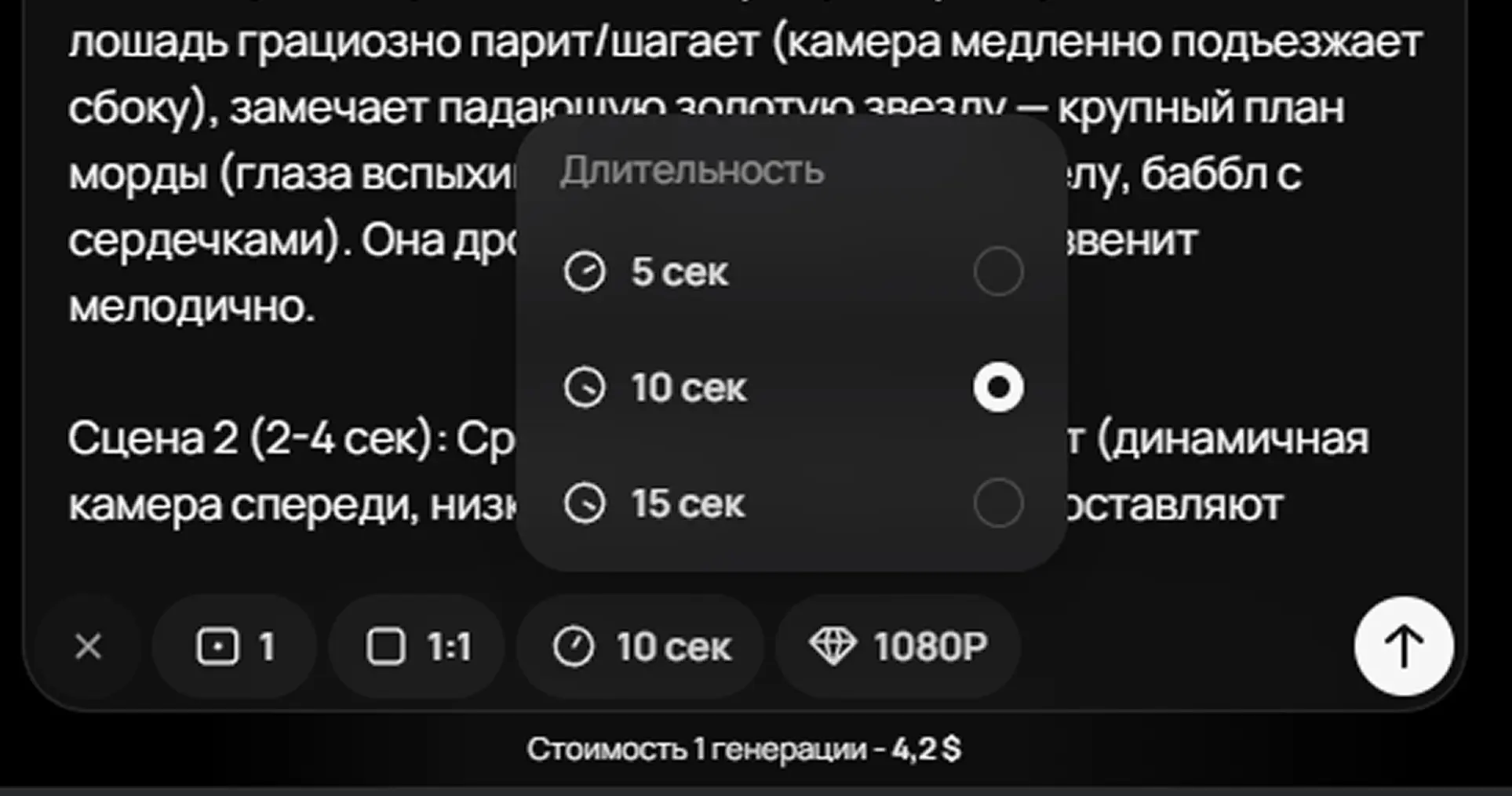 • Text-to-video generation in Russian and English (16:9 or 9:16 formats)