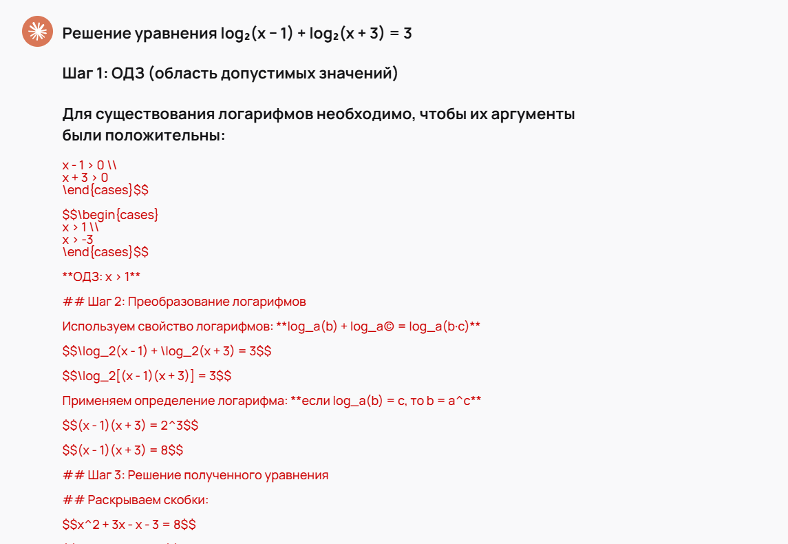 ОДЗ должно быть явно выписано, разбор по случаям выполнен без пропусков, а все найденные корни проверены подстановкой. Это позволяет быстро понять, не пропустила ли модель условия корректности и не выдала ли формальный, но неверный ответ.