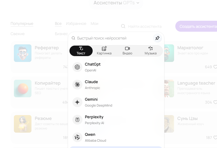 В GPTunneL все модели доступны на русском языке. В списке есть российские нейросети (YaGPT и GigaChat), которые изначально рассчитаны на русскоязычных пользователей.