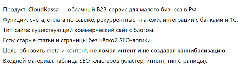 Итог: модель сработала как SEO-стратег и архитектор контента, а не как редактор текста. Чтобы просмотреть результат, проходите сюда.