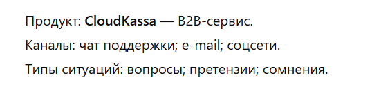 Метрика успеха: ответы можно использовать без правок, снижение повторных уточнений от клиента, отсутствие эскалации тона в цепочке диалога.