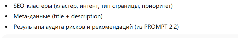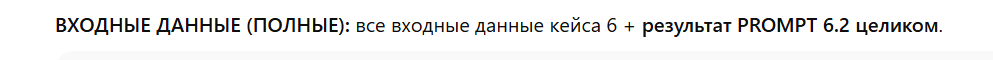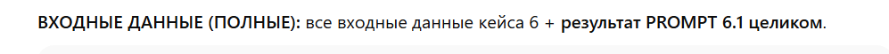 Если промпт требует результат предыдущего шага, это прямо указано – вставляйте его вручную. Промпты используйте в строгом порядке, иначе нарушится логика пайплайна.